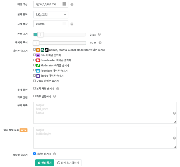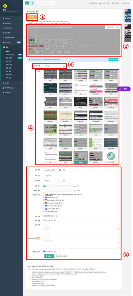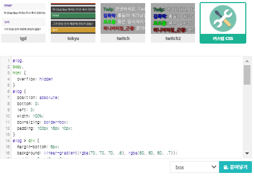 트윕/아프리카도우미 채팅창 디자인(CSS) 제작의뢰 오픈!/트위치/아프리카TV