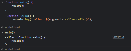 위와 같이 현재 함수객체를 그대로 출력하는 것을 볼 수 있다. 그리고 이 arguments.callee의 하위 맴버로 caller라는 객체가 있는데, 이게 바로 현재 함수의 호출자를 나타내는 맴버이다. arguments.callee.caller를 출력하게 해보면