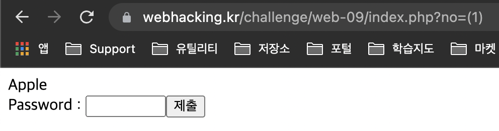 "no"에 쿼리 삽입이 가능한지 확인하기 위해 "1"에다가 괄호를 감싸서 넣어봤는데 정상적으로 Apple이 출력됐다.