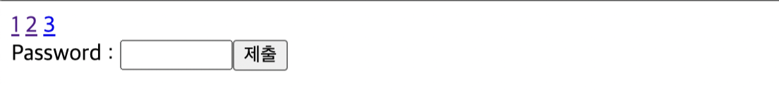 "1, 2, 3"이라는 앵커가 보이고, Password라는 항목으로 Form이 있다. 비밀번호를 입력하는 걸로 봐선 여기에 무언가를 입력해서 submit하면 문제를 해결 할 수 있는 듯 하다.