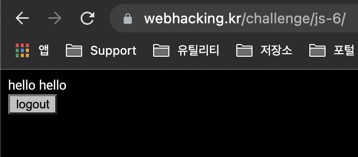 "hello"라는 문자열을 보냈더니 페이지에 "hello hello"라는 문자열이 출력되었다. logout 버튼은 눌러도 딱히 별다른 기능은 없고 페이지의 새로고침만 이루어진다. 근데 한가지 이상한 점은 새로고침을 했는데도 "hello hello"라는 문자열이 사라지지 않고 남아있으며, 처음에 보았던 입력창과 제출버튼이 나타나지 않는다. 페이지를 아예 나갔다가 들어와도 똑같은 "hello hello"라고 출력하는 것을 봐선, 나의 접속 정보를 저장하고 있는듯하다. 그렇다면 분명 쿠키 값으로 무언갈 저장하고 있다는 것인데,